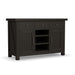 - The back panel contains an escape hole to the cabinet that allows cords to be ran through
