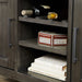 - Two side cabinets, each with self-closing hinges and an adjustable shelf