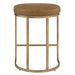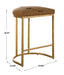 - Antique Brushed Brass With A Rich Camel Colored Faux Leather Cushion.