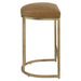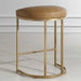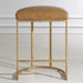 The clean lines of this 26" high counter stool are made of iron and finished in an antique brushed brass. A rich camel colored faux leather cushion complements the simple frame.