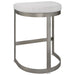 Simplistic But Sturdy, This Statement Counter Stool Features A Thick Hand Forged Iron Base Finished In Brushed Silver. Plush Seat Is Tailored In A White Linen Blend Performance Fabric.