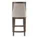 Transitional Versatility Is Embodied In This Classic Counter Stool, Tailored In A Faux Pebbled Leather In Cappuccino, With A Contrasting Smooth Walnut Finished Solid Wood Frame. Antique Bronze Finished Metal Kick Plate.