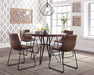 Details | D372-01: Tubular metal base, Bucket seat, Faux leather upholstery, Assembly required, D372-15: Tabletop made with mindi veneer and engineered wood, Metal base with brushed dark bronze-tone finish, Seats up to 4, Assembly required, | |