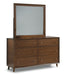 Understated yet elegant, the Ludwig dresser features clean lines and tapered, splayed legs in a warm, walnut finish for a classic mid-century modern look. Designed to perfectly complement the different Ludwig beds in the collection, this dresser provides six spacious drawers accented with round, brushed brass pulls. All upper drawers are felt-lined to keep contents protected and in place. For added dimension and convenience, pair this with an optional coordinating mirror. A small-scale silhouette makes this dresser a perfect fit for any size space.