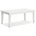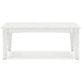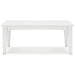 Drift into outdoor entertainment bliss with this coffee table. Dressed in a bright white for a fresh feel, it weathers sunny summer days and cozy winter nights with durable MEGA-TUFF® HDPE material. When it comes to form and function, the table's rain-shedding slatted design simply goes with the flow. Use it to hold outdoor decor, drinks or snacks.