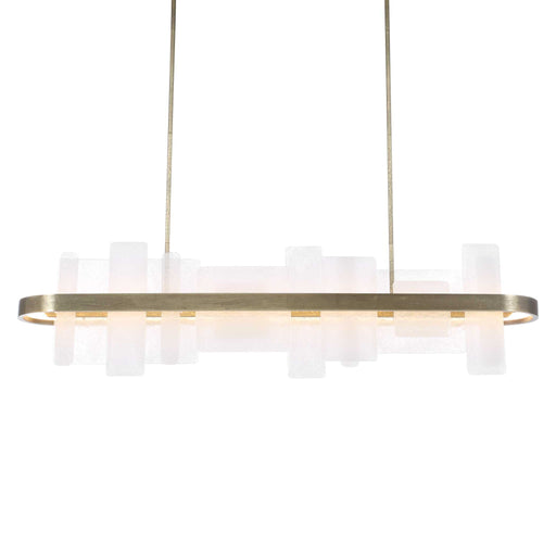Original price $2,109.99 - Original price $2,109.99Original price$2,109.99$2,109.99 - $2,109.99Current price $2,109.99On The Ice - LED Pendant - BrassRevelationSoft rectangles of thick Opaline bubble glass glow, while floating and overlapping, illuminated by LED light. The light antique brass finish band h... View full details