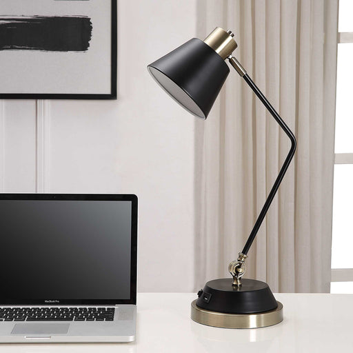 Original price $229.99 - Original price $229.99Original price$229.99$229.99 - $229.99Current price $229.99Desk Lamp - Black MetalSalt & LightUpdate your work space with this contemporary look. Finished in a rich dark bronze with antique brass accents, this desk lamp features an integrate... View full details