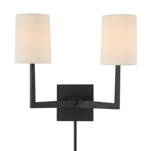 Original price $399.99 - Original price $399.99Original price$399.99$399.99 - $399.99Current price $399.99Open Arms - 2 Light Sconce - Black / GrayRevelationTwo arms, detailed in a hammered texture finished in powder black, are each adorned with a round tapered hardback linen shade in light gray. Built ... View full details