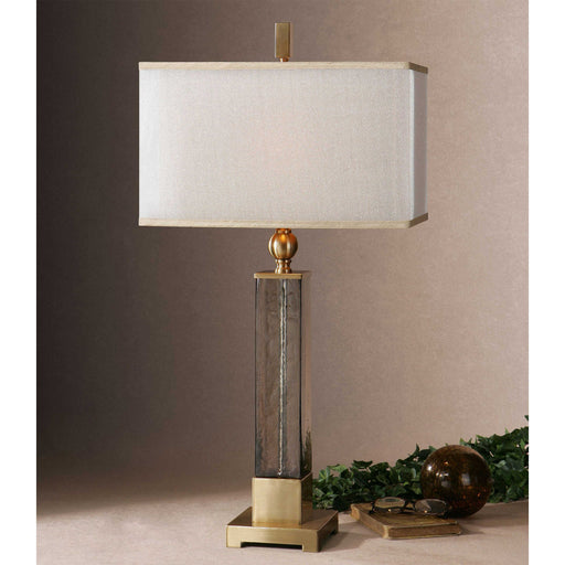Original price $319.99 - Original price $319.99Original price$319.99$319.99 - $319.99Current price $319.99Crystal Column - Table Lamp - Pearl SilverUttermostClean Lines Define This Simplistic Design Featuring An Upscale Square Column Crystal Base Paired With Antique Brass Plated Details. The Square Shap... View full details