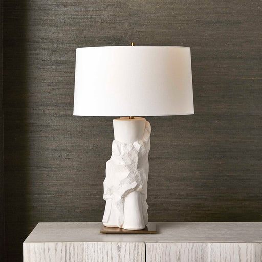 UttermostThis Ceramic Table Lamp Features A 3-dimensional Twisted Swirl Pattern Finished In A Textured Chalk White Glaze Accented With Polished Nickel Detai...