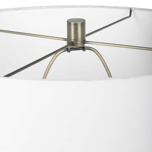 UttermostThe Architect Table Lamp Showcases A Towering Build Of Ceramic Components In An Ivory Gloss Glaze Complemented By Antique Brushed Brass Plated Iron...