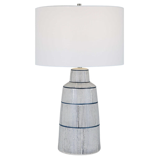 UttermostInspired By The Classic Nautical Stripe Knit, This Ceramic Table Lamp Sports A Satin White Glaze With Rich Navy Blue Stripes And Polished Nickel Pl...