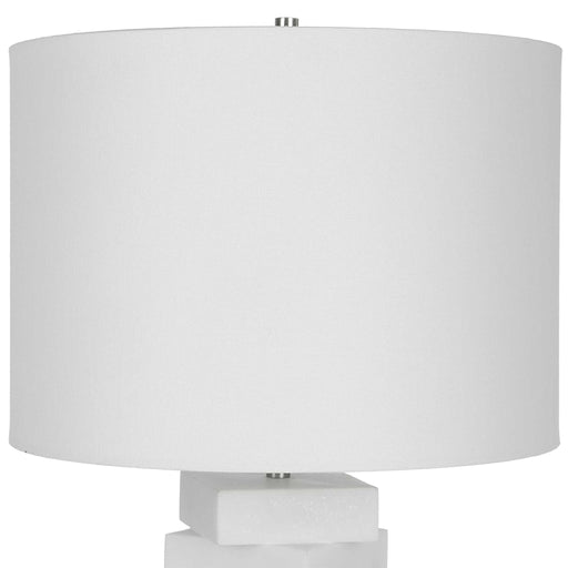UttermostThe Ascent Table Lamp Showcases A Unique Geometric Design With Alternating Stacked Blocks Constructed From A Man-made Ivory Stone That Accurately R...