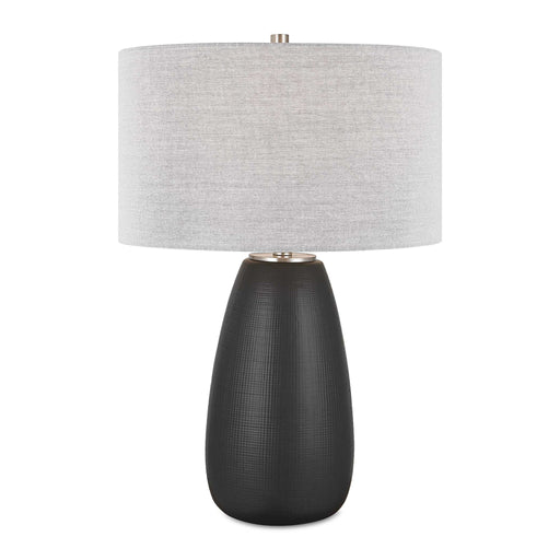 UttermostThe Twilight Table Lamp Features A Ceramic Base With A Subtle Carved Gridline Texture, Finished In A Satin Black Glaze And Accented By Brushed Nick...