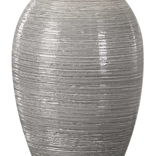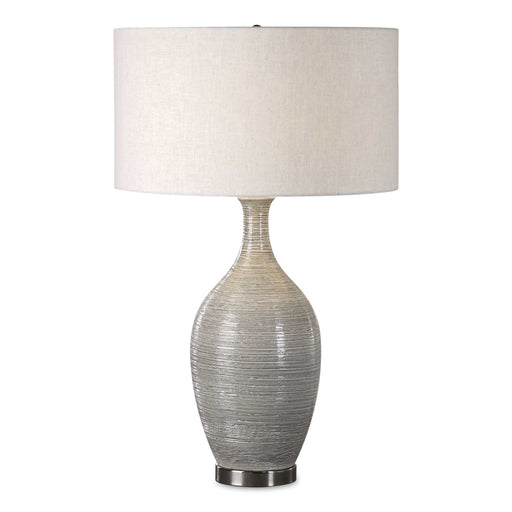 UttermostThis Ceramic Base Features A Coarse, Horizontal Texture, Finished In A Mushroom Gray Glaze, Accented With Plated Polished Nickel Details. The Round...