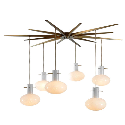 Original price $2,379.99 - Original price $2,379.99Original price$2,379.99$2,379.99 - $2,379.99Current price $2,379.99Superstar - 6 Light Pendant - Brass / WhiteRevelationBringing star-gazing indoors, the Superstar Pendant features a radiating star canopy suspending six unusually-shaped white seedy glass shades with ... View full details