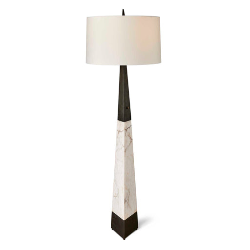 RevelationThe Trian Floor Lamp features a slim, tapered, three-sided pyramid that expands the length of the lamp. The alabaster center is supported between a...