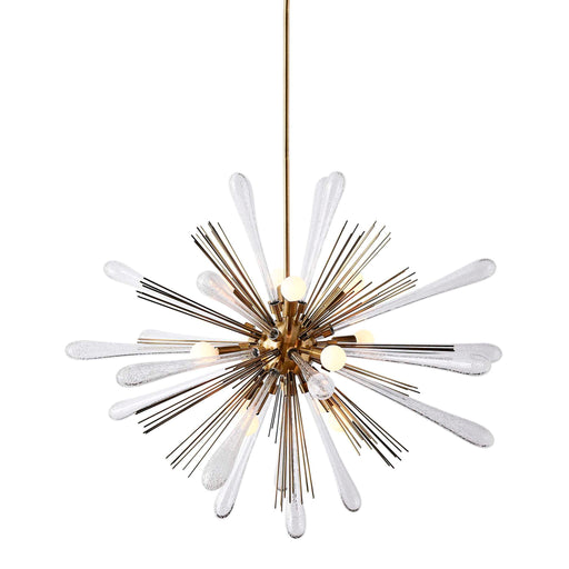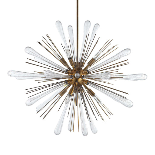RevelationAn explosion of light is expressed with hand blown seeded elongated glass drops, accented with aged brass rods, and illuminated by 12-60 watt max c...