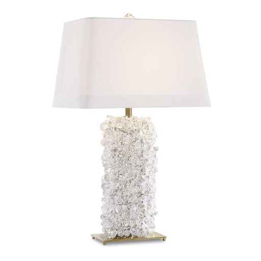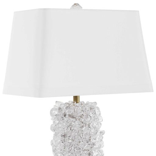 RevelationSparkling glass resembling rock candy is assembled by hand to create the body of the Spangled Table Lamp. The narrow rectangular shape and transiti...
