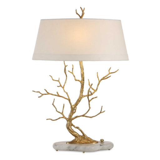 RevelationGolden chestnut solid brass branches seem to reach upward through the shade. A dimmer switch is located in the honed Carrara marble base. Oval hard...