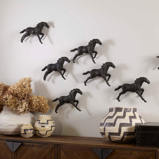 Original price $219.99 - Original price $219.99Original price$219.99$219.99 - $219.99Current price $219.99Stampede - Metal Wall Sculpture - BronzeRevelationA symbol of American pride, this wild mustang wall sculpture will look great running by itself or in a herd across a wall. Made of cast iron with a... View full details