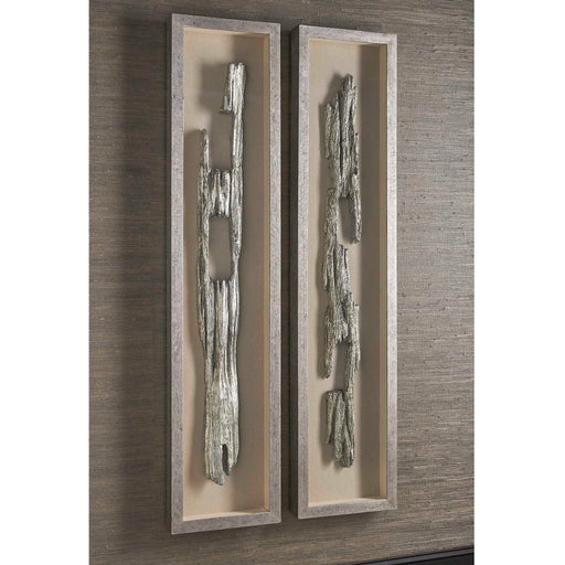 Original price $1,289.99 - Original price $1,289.99Original price$1,289.99$1,289.99 - $1,289.99Current price $1,289.99Amalur - Shadow Boxes (Set of 2) - SilverRevelationReplicated from old fence posts, finished in bright metallic silver, placed on a linen backing with a hand applied silver leaf framed shadow box. M... View full details