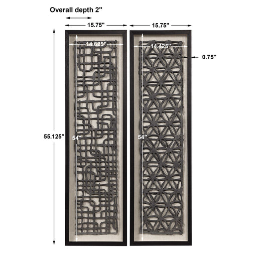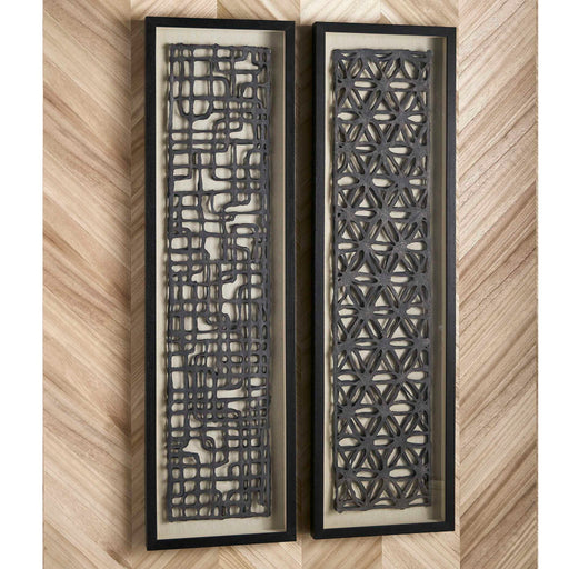 Original price $789.99 - Original price $789.99Original price$789.99$789.99 - $789.99Current price $789.99Caroni - Shadow Boxes (Set of 2) - Black / BrownRevelationElevated 3-dimensional layers of geometric hand torn paper in charcoal black placed atop a natural linen fabric background, showcased in shadow box... View full details