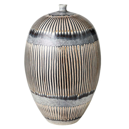 RevelationThe Channeled Vase design draws inspiration from classic roman and art deco designs. Made of ceramic and decorated in matte black and white glaze.S...