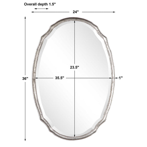 Salt & LightThis oval shaped, silver frame, is made of hammered metal and features a concave surface. The mirror has a generous 1.25" bevel. May be hung either...