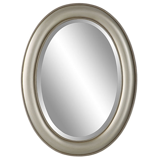 Salt & LightBeaded details enhance the simplicity of this oval frame. The finish is a metallic silver with subtle brown antiquing. The mirror has a 1" bevel an...