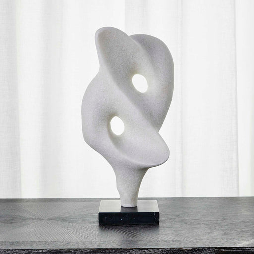 Each angle of the looping knot sculpture provides a different perspective, creating interest and intrigue. Made of ground white marble and polymer ...