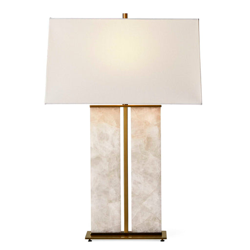 Elegant and essential, the Lucent Table Lamp showcases quartz crystal stone panels that float atop a rich brass slab base. Features a rectangular t...