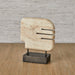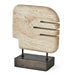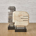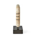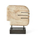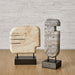 Icon-inspired and carved of beige unfilled travertine, this work is set on a bronzed steel base for a study in contrasts. Textured vs smooth, light vs dark: the interplay invites a closer look whether displayed alone or as part of a grouping.
