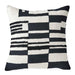 The Barcode Pillow features blocks of black and white applique, and black textured boucle embroidery. Design is on front and back with an invisible zipper closure. 95/5 feather down insert included. Recommend professional dry clean only.