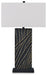 Kick your style up a notch with this table lamp. The impressive black base boasts textured detail enhanced with striking gold accents for sophisticated flair. Its eye-catching form exudes an urbane yet casual vibe, making it an easy addition to existing decor.