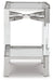 Details | Made with acrylic, metal and glass, Lower open shelf, Chrome plated metal legs with clear acrylic accents, Assembly required | |