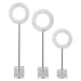 Contemporary Trio Features Solid White Marble Rings Supported By Polished Chrome Rods And An Elegant Crystal Base. Sizes: S-6x15x3, M-6x19x3, L-6x22x3