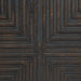 This accent cabinet is a versatile stunner with 3 geometric patterned door fronts in warm dark brown accented with goldtone finish metal hardware. Standing on a goldtone metal open frame base, the three-door console is aesthetically contemporary and sophisticated, ready to serve as buffet, console or media cabinet.