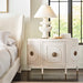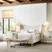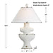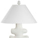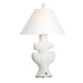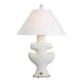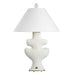 The Frosted Leaf Lamp shape was inspired by Matisse drawings. Made of ceramic, the soft white finish is reminiscent of buffed white plaster. It has a dimmer and matching ceramic finial. Elliptical Coolie shade is covered in beautiful linen-like fabric.