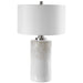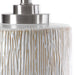 This Lamp Showcases An Aged White Ceramic Base Accented With Charcoal Flecks And Textured Beige Drip Details. Brushed Nickel Hardware Is Paired With This Piece. The Round Hardback Shade Is A White Linen Fabric. Due To The Nature Of Fired Glazes On Ceramic Lamps, Finishes Will Vary Slightly.