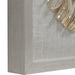 Layers of natural curly willow branches featuring gold leaf accents, set against a burlap background under glass with a brushed silver shadow box frame. May be hung horizontal or vertical.