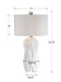 Modern Style Emanates From This Table Lamp With An Embossed Geometric Pattern Finished In A Glossy White Glaze Accented With Polished Nickel Details And A Crystal Finial. A Round Hardback Shade In White Linen Fabric Complements This Piece.