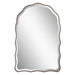 Scalloped edges define this beautiful arch top mirror, giving it a more feminine and delicate appearance. The frame is finished in an antique bronze with gold highlights and surrounds a 1" beveled mirror.