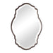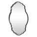 Graceful curves add elegance to this unique mirror. The frame features an antique silver champagne finish, accented with a dark bronze outer edge. The mirror has a 1.25" bevel. May be hung either vertically or horizontally.