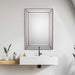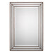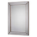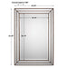 This frame features mirror inlays, separated by thin, grooved framing strips, finished in a metallic bronze. The center mirror has a 1" bevel. This frame may be hung either vertically or horizontally.