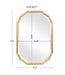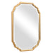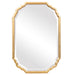 This vanity mirror features elegant curved corners and finished in a lightly antiqued, metallic gold leaf. The mirror has a generous 1.25" bevel. May be hung either vertically or horizontally.
