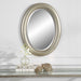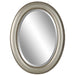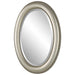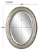Beaded details enhance the simplicity of this oval frame. The finish is a metallic silver with subtle brown antiquing. The mirror has a 1" bevel and may be hung either vertically or horizontally.