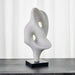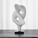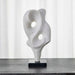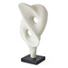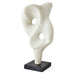 Each new angle of the Origin Sculpture provides a unique viewing perspective, while appearing fluid in movement. Crafted from ivory man-made stone, that accurately replicates the look of Thassos marble, with a honed black marble base.