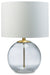 Featuring a round, clear glass base, this table lamp has a clean sculptural appeal that's easy to implement into a variety of decor styles. Its sheer simplicity exudes a clean, fresh aesthetic, adding low-key glamour to your bedroom or living room.