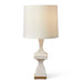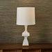 Reminiscent of lamps made in Italy in the 1950s and 60s, this gorgeous lamp has all the right curves. Carved from solid marble into a fun three-dimensional shape, it rests atop a brass finished base. The faux-silk shade is finished with a self trim, reflecting a dressmaker detail perfect for this silhouette.
